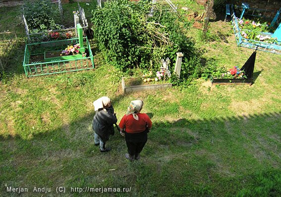 По мимо самой церкви мое внимание привлекло маленькое сельское кладбище. Оно очень интересно, поскольку может дать представление о этническом происхождении жителей села. С керамических фото на нас глядят типично марийские лица... Да и на первый взгляд русские фамилии - Колмыковы, Коныжонковы, Шамаевы , Вагановы в особых комментариях не нуждаются. Перед нами с высокой вероятностью потомки той самой летописной ростовской мери.