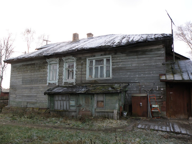 резные наличники, особенно изысканные на 2-м этаже. Карнизы крыши также несут